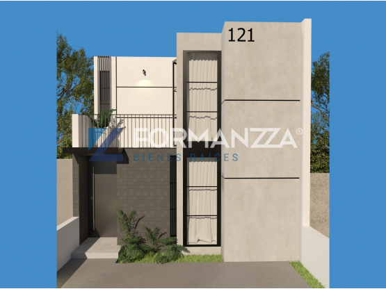 La propiedad Modelo LATTE se desarrolla en dos niveles y al frente cuenta con cochera descubierta para dos autos.